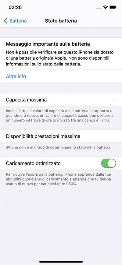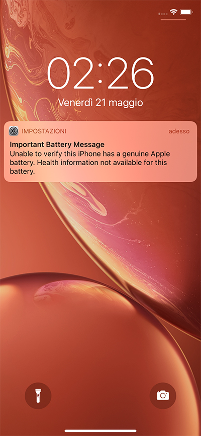 Quando un venditore sostituisce una batteria usata con una nuova in uno degli ultimi iPhone (XR, XS, XS Max, 11, 12, 13 e generazioni successive), un messaggio appare sulla schermata di blocco e nella sezione impostazioni ”Batteria”.